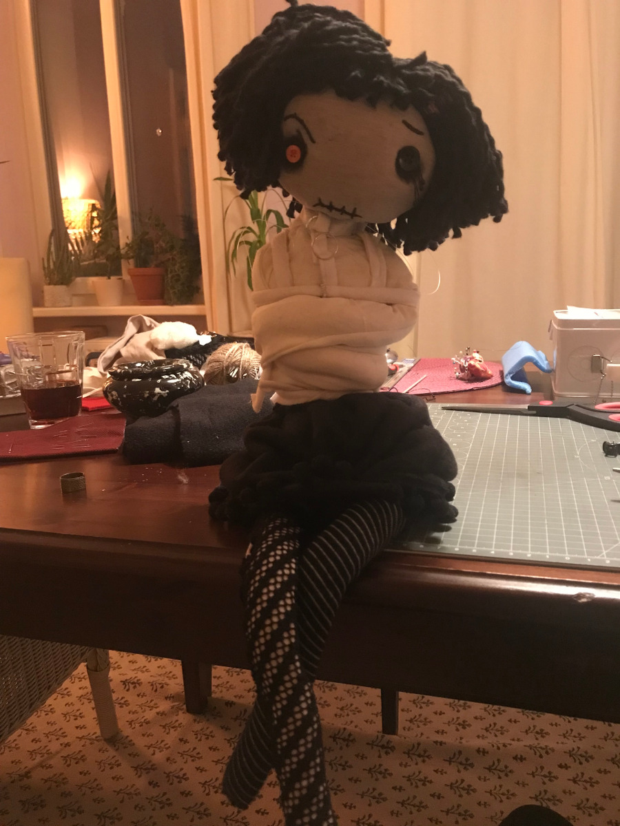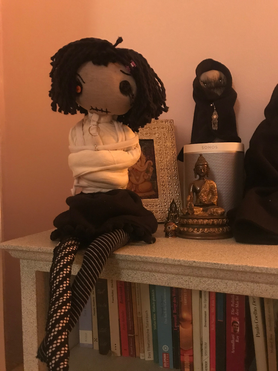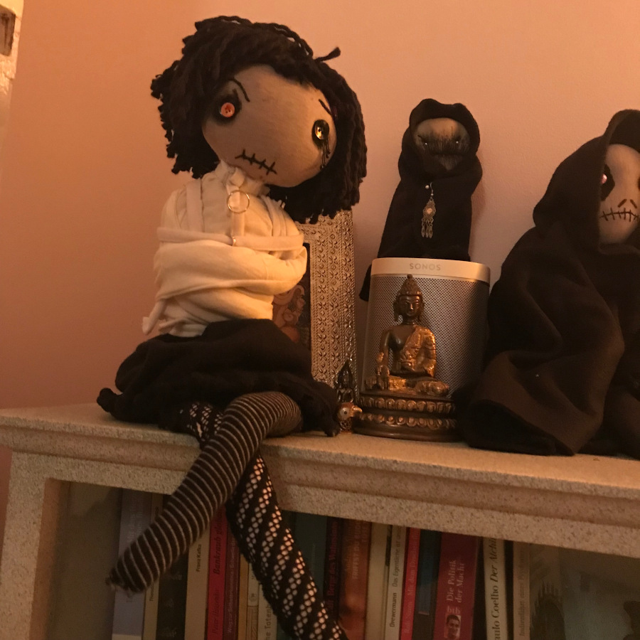 Obwohl sie es immer wieder darauf anlegt, kommt einfach kein Date mit dem Gevatter zustande. Sie fühlt sich fremd unter den anderen Puppen, teilt ihre dunklen Gedanken mit niemandem und leidet lieber still vor sich hin.