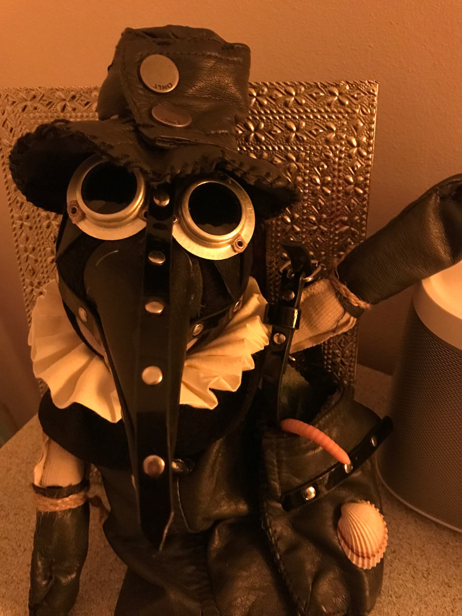 Der melancholische Mediziner, der sich aufopfernd allen Leidenden annimmt und sie doch nicht heilen kann. Er trägt die Maske nicht zum Schutz vor Pest und Cholera, sondern nur, um seine große Trauer zu verbergen.