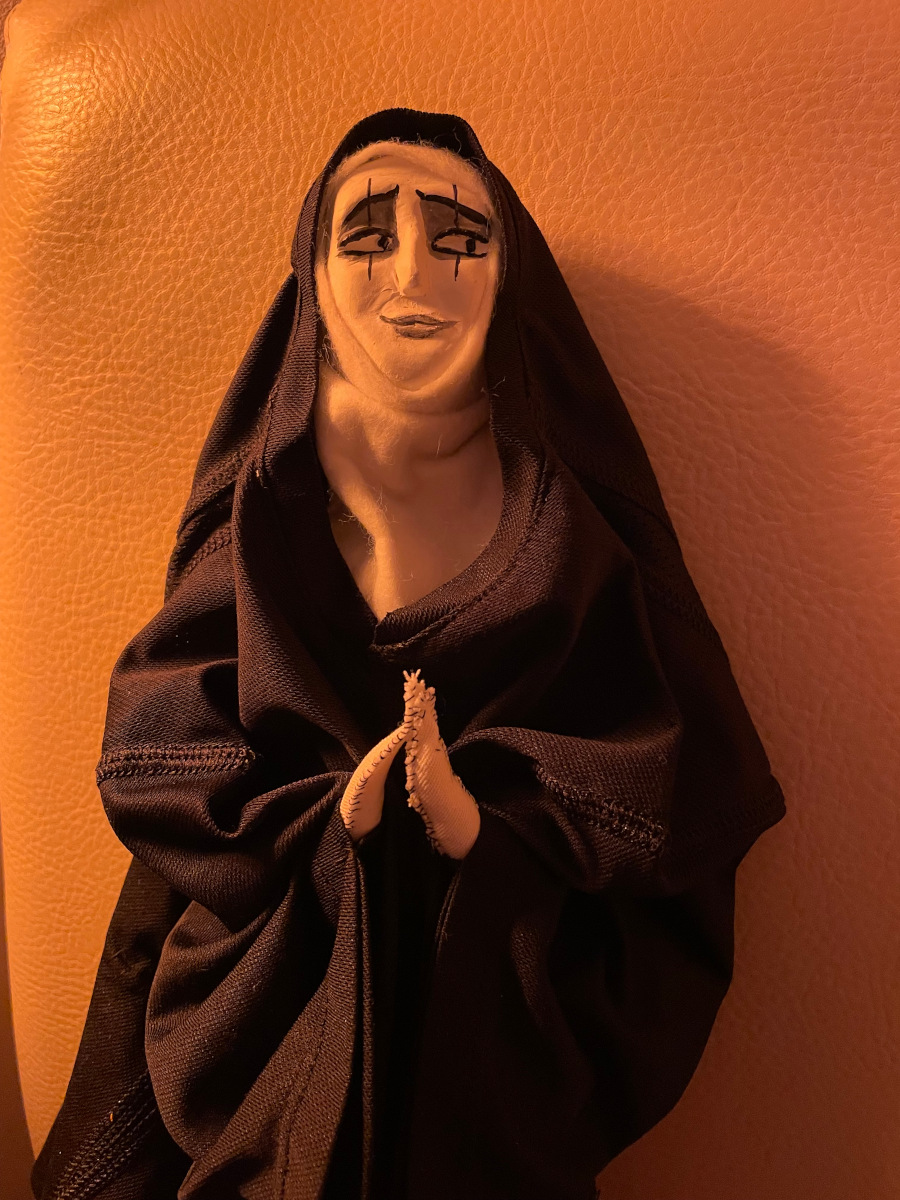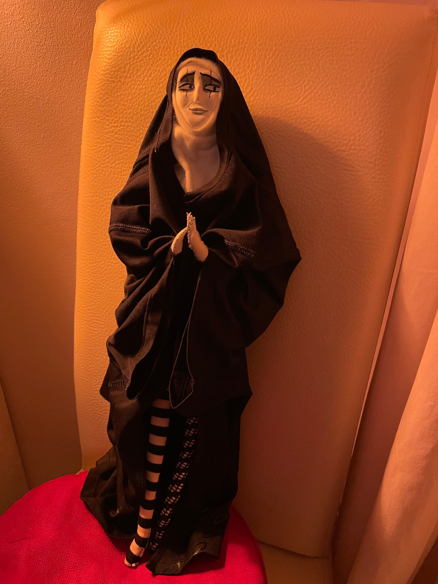 Die polyamore Ordensfrau. Scheinheilig wie sie ist, betet sie unter Anderem Mr. Brightside an. Sie kennt ihn aus alten Tagen als die Nase noch rot und sie noch nicht mit dem Sohn Gottes verheiratet war.